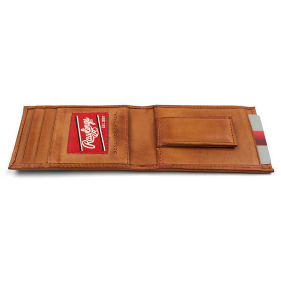 Skip to main content. Rawlings red label american handcrafted leather trifold brown wallet ac109 202. Rawlings mens tanned leather baseball stitch embroidered wallet dark brown 43 out of 5 stars 93.