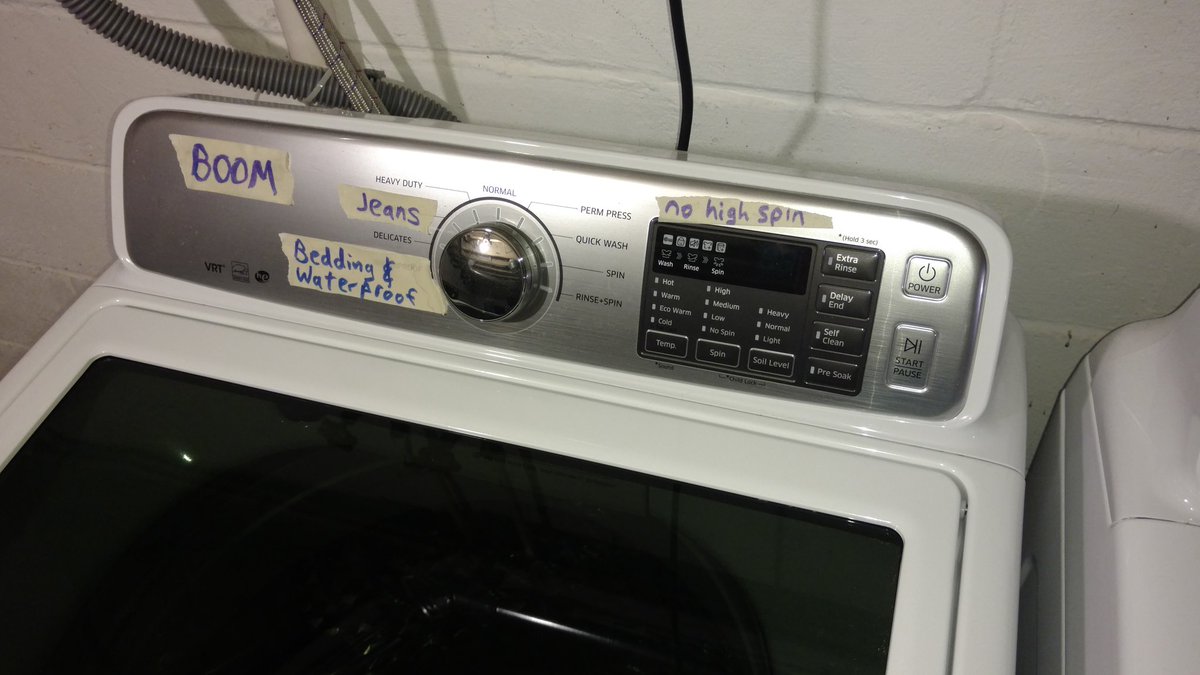 Own a samsung washer. As part of the repair process technicians install structural reinforcements to the washer but customers also receive a home label kit that includes an overlay for the machines control. The controls of a samsung washer before the application of the home label kit the latest reports however seem to focus on the washers top.