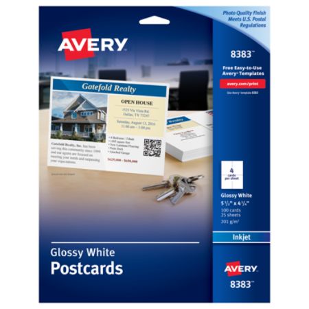 Avery Inkjet Post Cards 4 14 X 5 12 Glossy White Box Of 100 Office