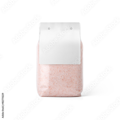 Pink Salt In Transparent Plastic Bag With White Label Isolated On