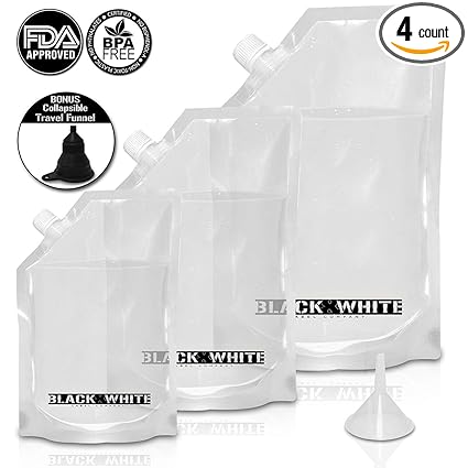 Amazon Com 3 Black White Label Premium Plastic Flasks Liquor
