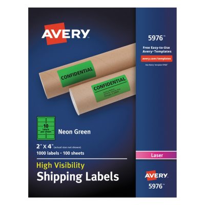 Avery High Visibility Shipping Label Laser 2 X 4 Neon Green