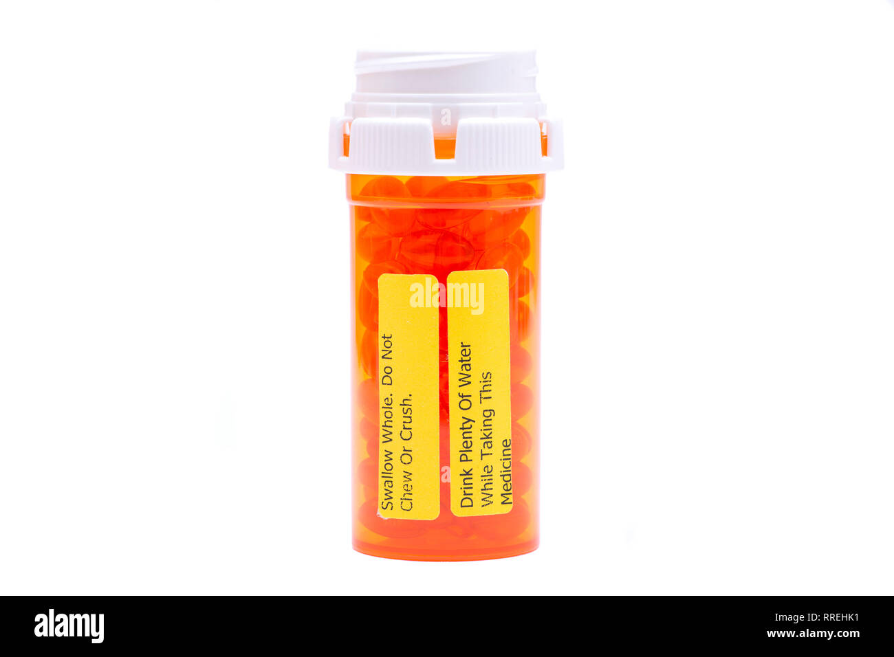 Docusate Sodium Soft Gel Capsules In Orange Container With Swallow