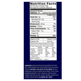 Chicken nuggets nutrition label. Fully cooked chicken nuggets breaded nugget shaped chicken patties product code. Chicken nuggets from chick fil a come in 5 sizes. 4 64 oz nuggets per serving pack information.
