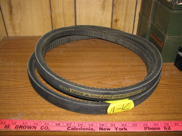 Nos surplus dayco gold label cog belt bx71. Outperforms and outlasts ordinary wrapped v belts by as much as 50 improved efficiency can reduce wasted v belt energy by as much as 50 the gold label cog belt is your guaranteed source of savings. Built with cogs in its top the belt provides additional flexibility around small pulleys while the increased surface area results in a cooler running belt for prolonged service life.