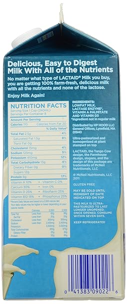 Lactaid milk nutrition label. How much fat is in 2 dairy products. Keep in mind the sugars listed on the nutrition facts label include naturally occurring sugars like those in fruit and milk as well as those added to a food or drink. All packaged foods have a label on them with information such as.