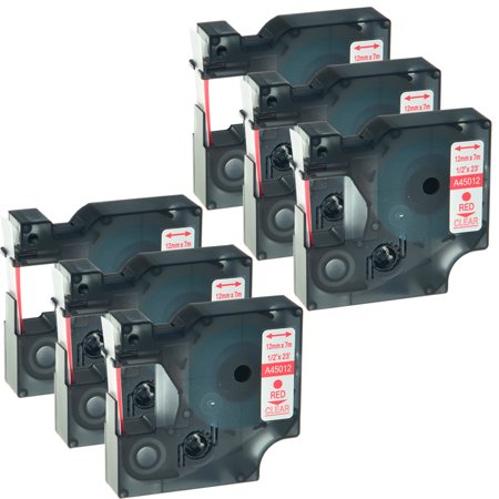 Greencycle 6pk 12mm 7m Red On Clear Label Tape For Dymo D1 45012