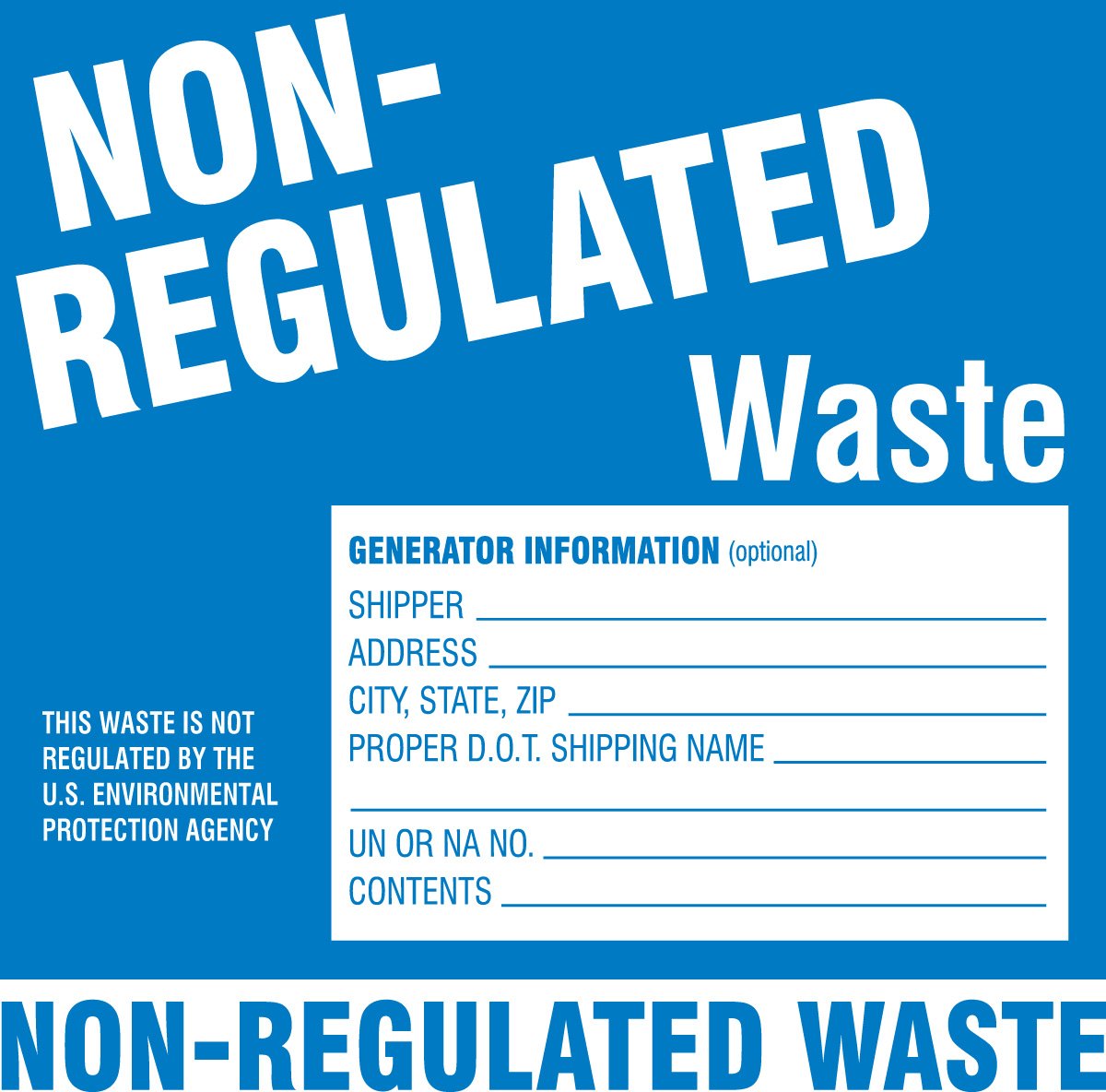 Non Regulated Waste Label