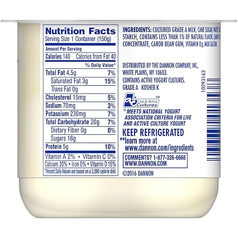 Nutrient data for this listing was provided by custom. Dannon plain yogurt can be enjoyed as a flavorful treat on its own or as a versatile addition to everyday recipes such as dips smoothies and baked goods.