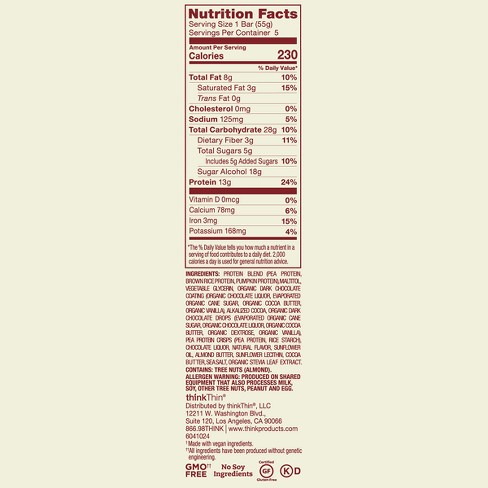 It reads more like a candy bar label than a nutrition bar. Calories in think thin bar based on the calories fat protein carbs and other nutrition information submitted for think thin bar. And were not talking pure natural sugars.