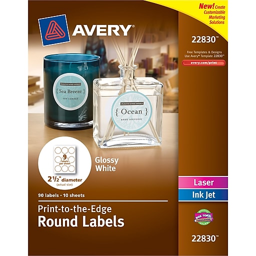 25 round labels pack of 1200 circle stickers 100 sheets inkjetlaser printer online labels 44 out of 5 stars 42. Avery 22926 glossy white 25 round labels print to the edge laserinkjet see more like this. Avery laserinkjet round print and write color coding labels assorted colors 1008pack 139585472.