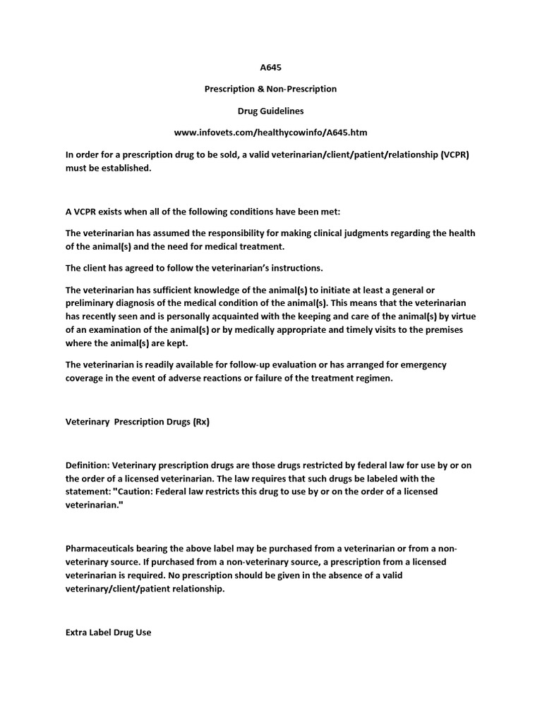 A veterinarian may prescribe the extra label use of a drug if. All states except ak ct me wa and dc have a specific law or regulation requiring a veterinarian to have vcpr to treat a patient federal regulations requiring vcpr. A written prescription for a veterinary medicine must include the following information.