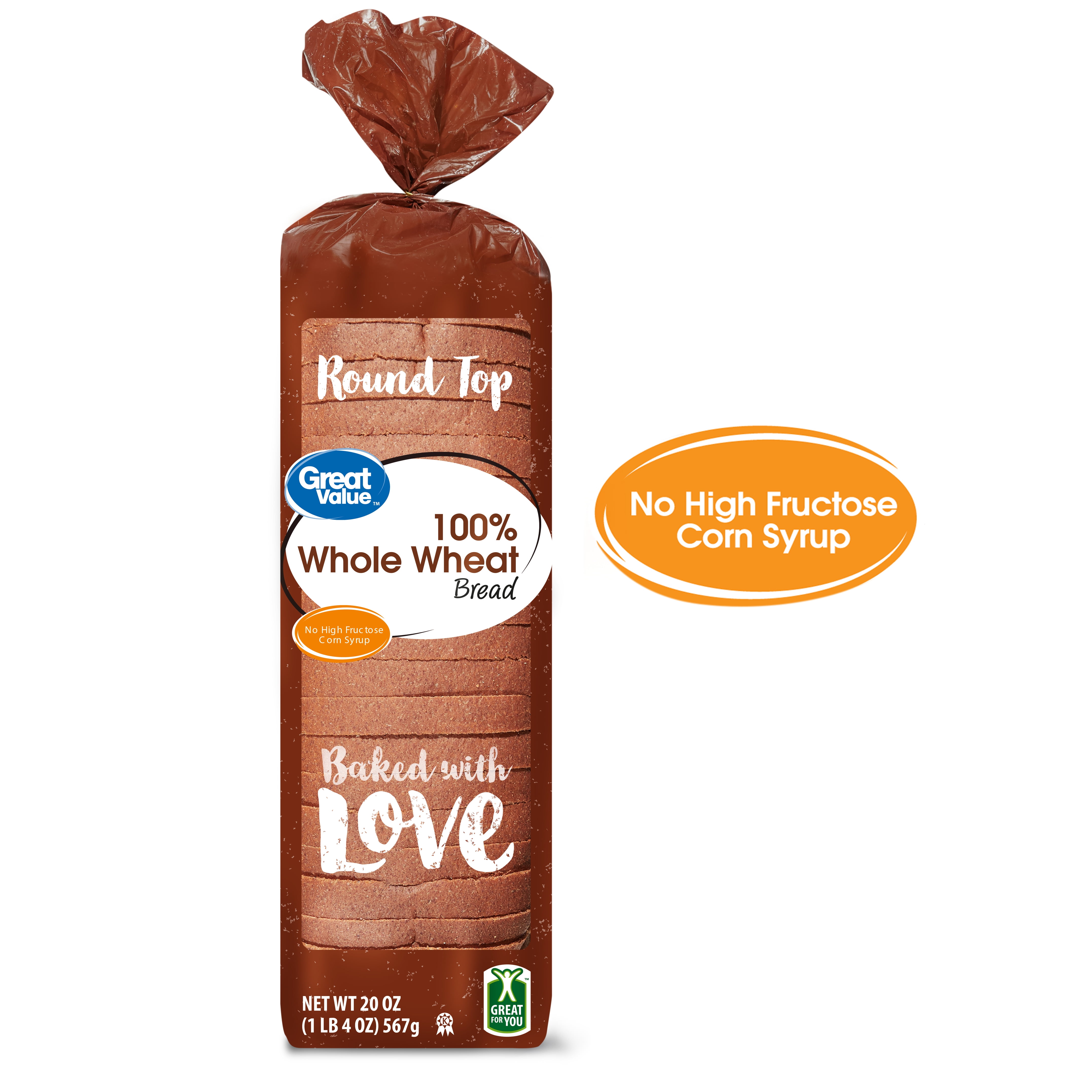 Great Value 100 Whole Wheat Bread Round Top 20 Oz Walmart Com