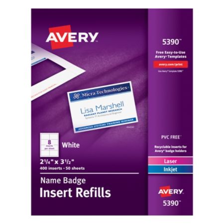 Avery Laser Name Badge Inserts 2 14 X 3 12 Box Of 400 Office Depot