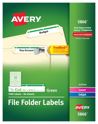 Avery permanent print or write laserinkjet white file folder labels provide a standard way to label your office files. Some manila folders may vary but the standard file folder tabs have dimensions of 35 x 05.