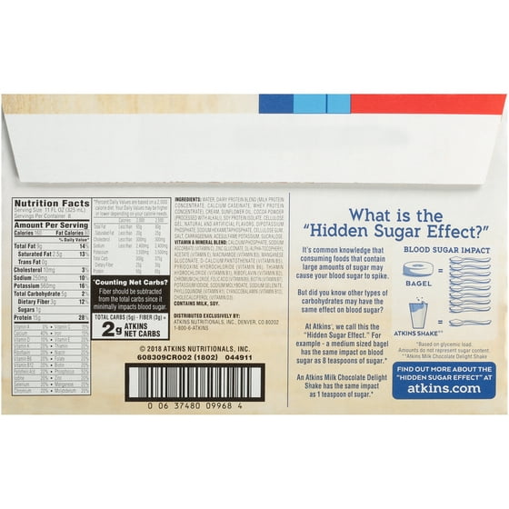Atkins shakes nutrition label. Atkins calorie and nutrition information for popular products from atkins. Net atkins count 2g. Many meal replacement shakes are loaded with calories and are high in sugar carbs and fat but atkins keeps their calorie count at a decent level.