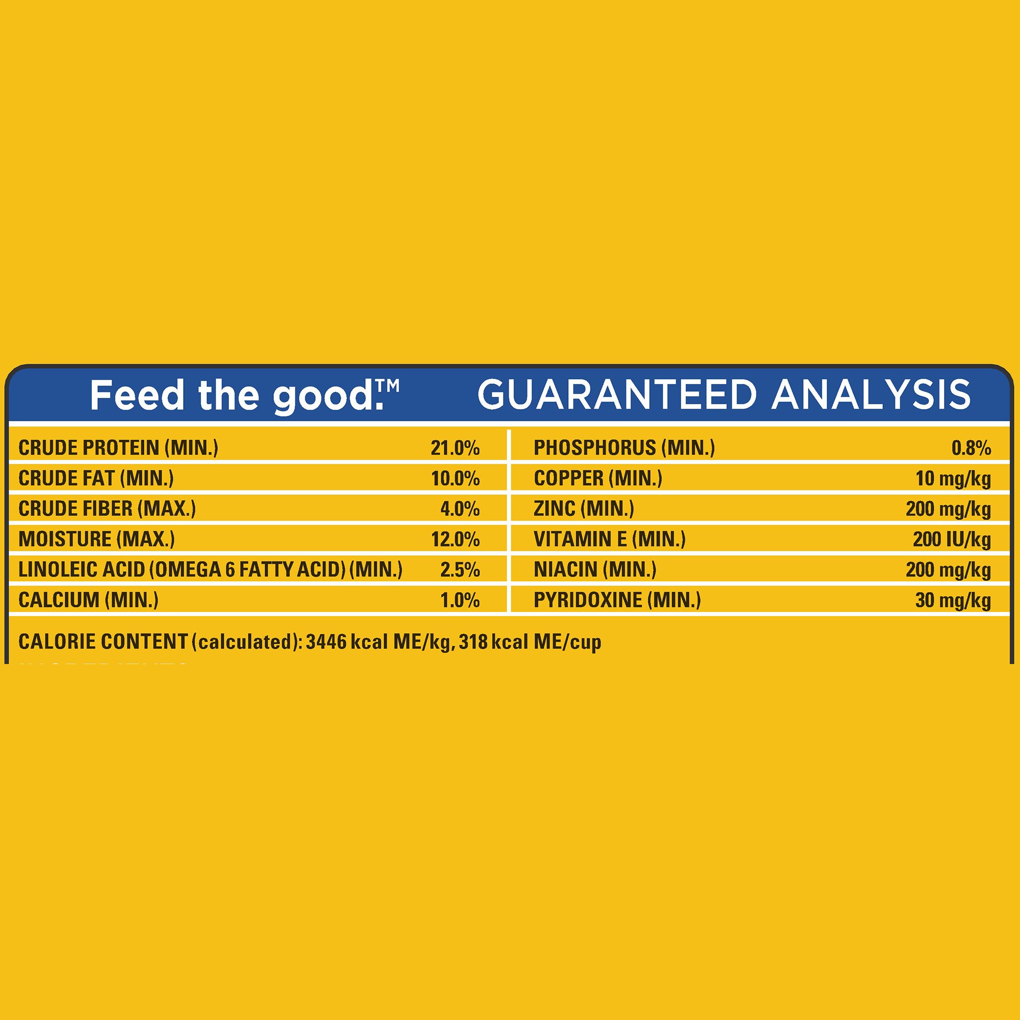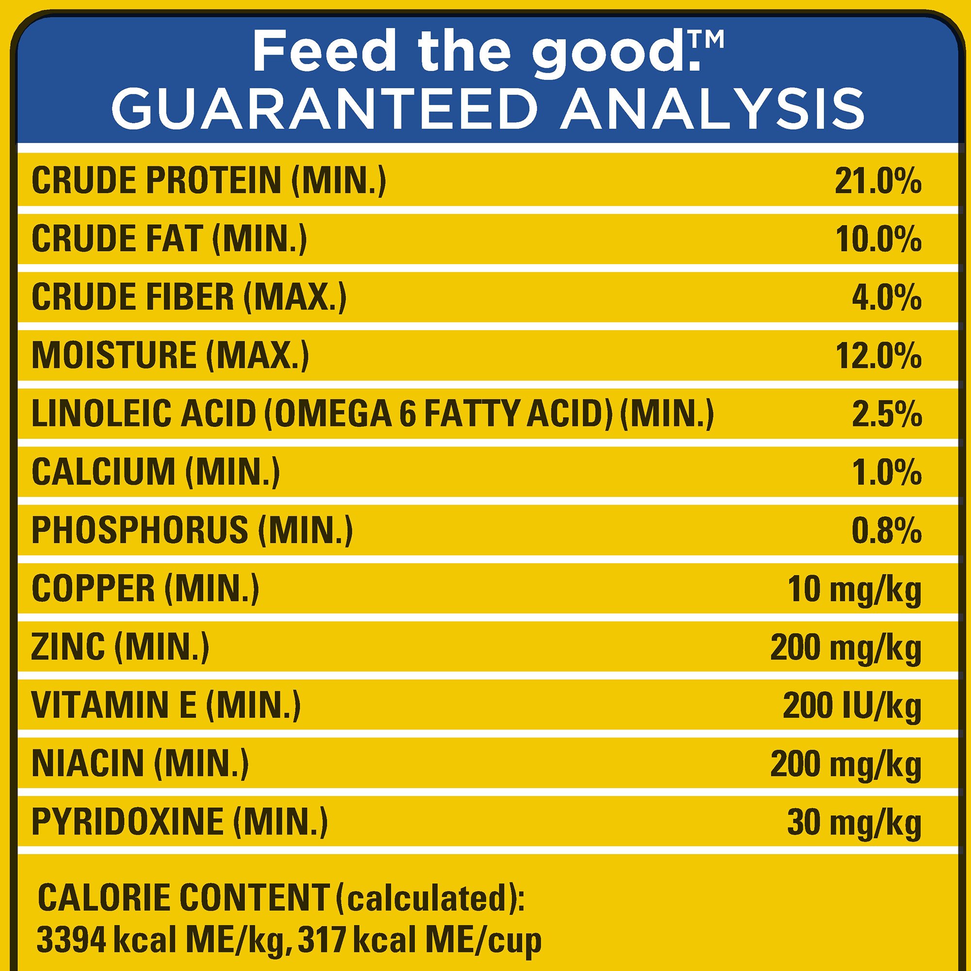 Pedigree dog food nutrition label.