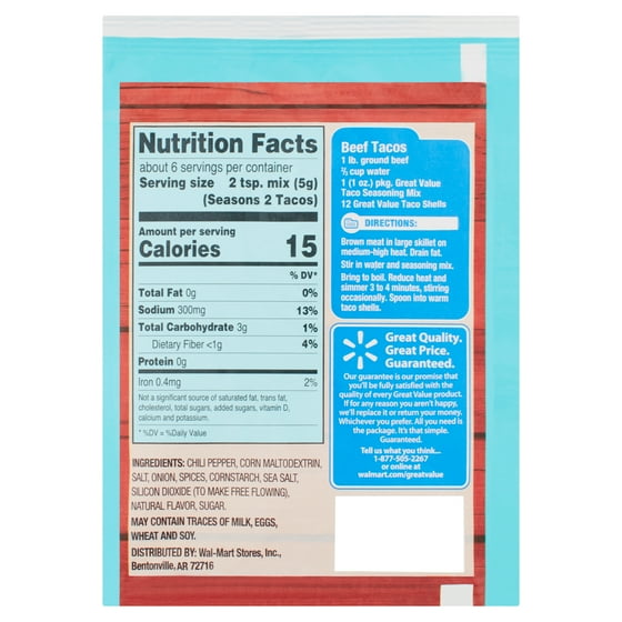 Now that i am a mom i am constantly reading food labels when i go grocery shopping and i am that person who stands and reads every label before throwing it into my cart. Get calories and nutrition facts on taco bell taco seasoning mix 125 oz including the amount of fat cholesterol and protein per serving or find healthy food alternatives. Mccormick taco seasoning original edited 7418 per label percent daily values are based on a 2000 calorie diet.