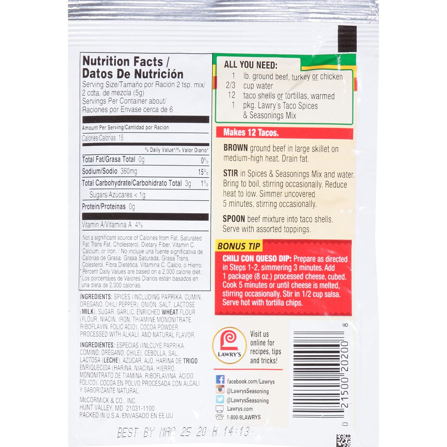 Taco seasoning nutrition label. Upon first glance youll notice that there are three grams of carbohydrates. Seven layer fiesta dip. Learn the good bad for 250000 products.