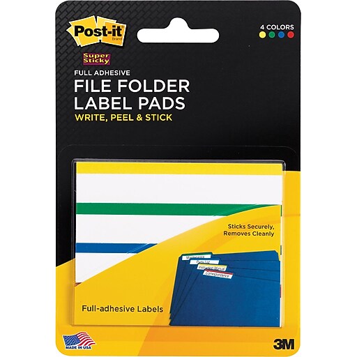 A perforated tab along each label makes it easy to separate from the pad and to position. Post it super sticky color removable inkjetlaser file folder labels 6200 gs.