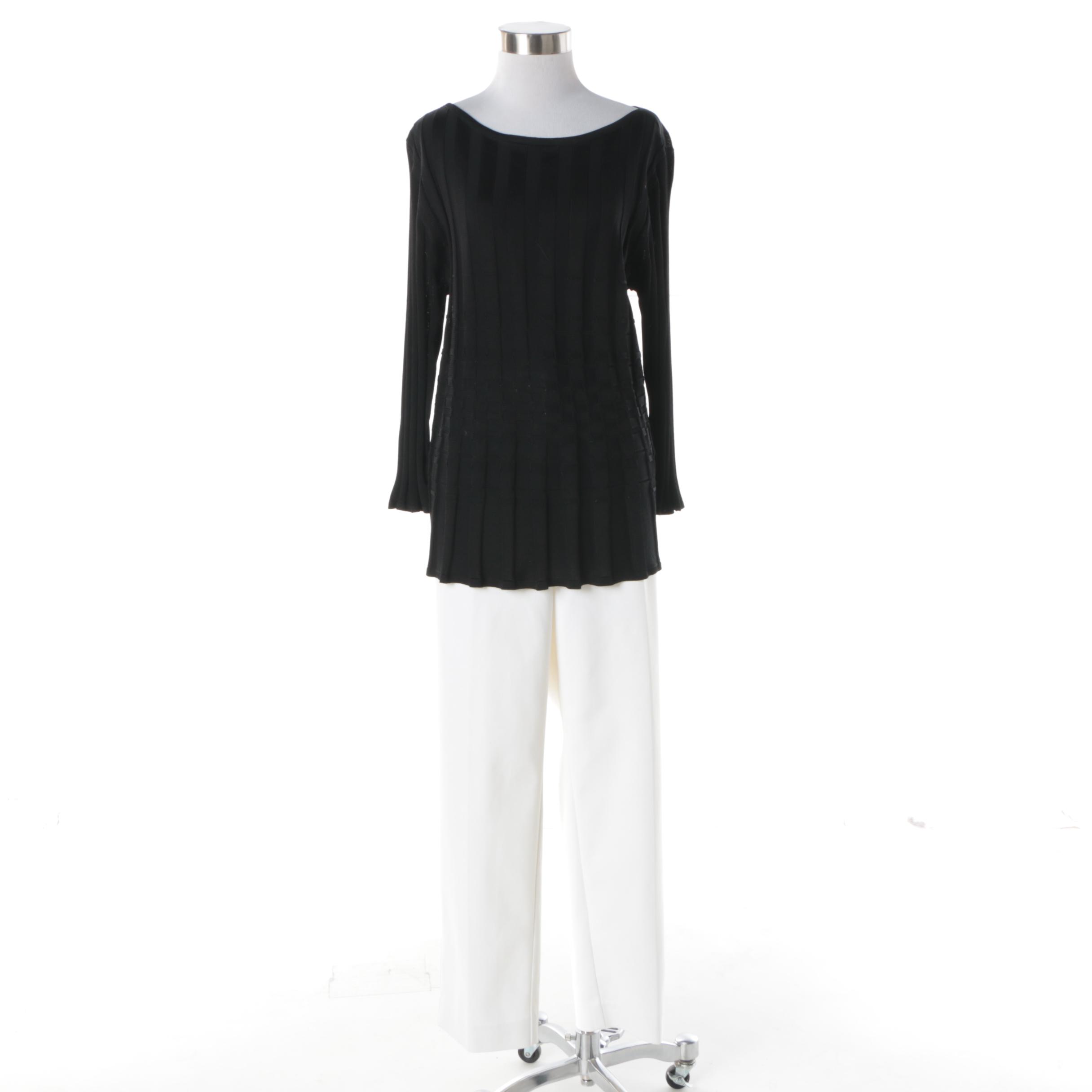 St John Black Label Size 12 Black White Skirt Suit 395 00